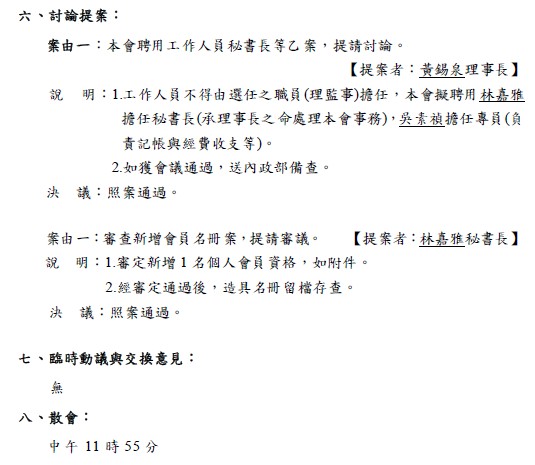第1屆第3次會員大會暨第1屆第8次理監事聯席會議 協會活動